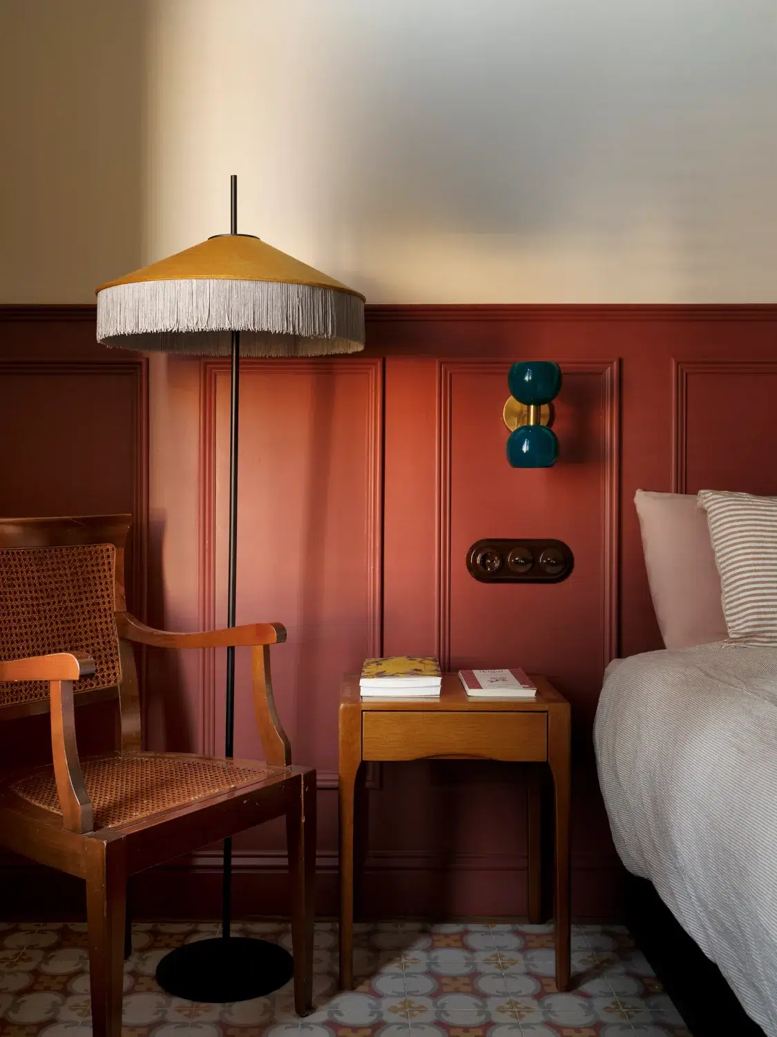 - Warm, earthy tones add depth to the bedroom