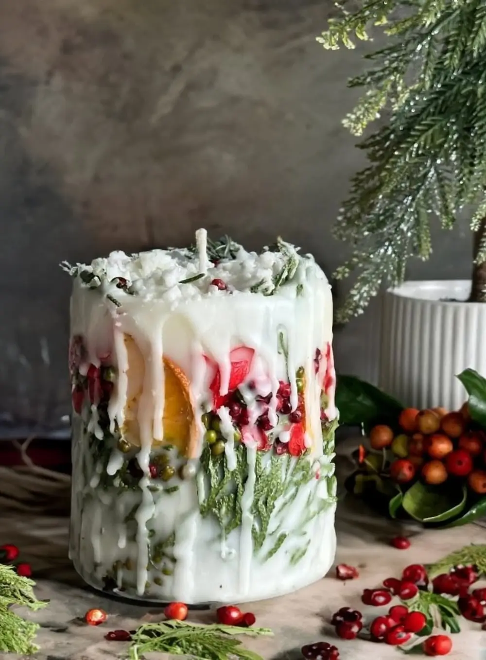 This candle doesn’t just smell like Christmas; it looks like it, too. With fir sprigs, dried orange slices, and warm spices embedded inside, it doubles as decor even before you strike a match. It’s the kind of scent that makes your home feel instantly comforting and festive. Find it here.