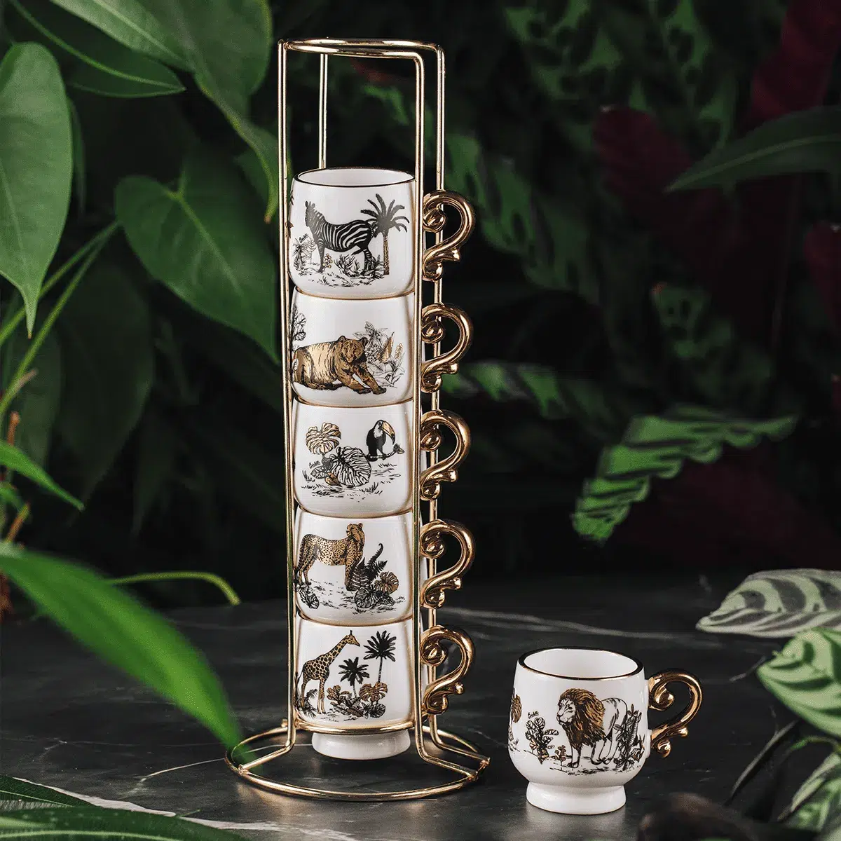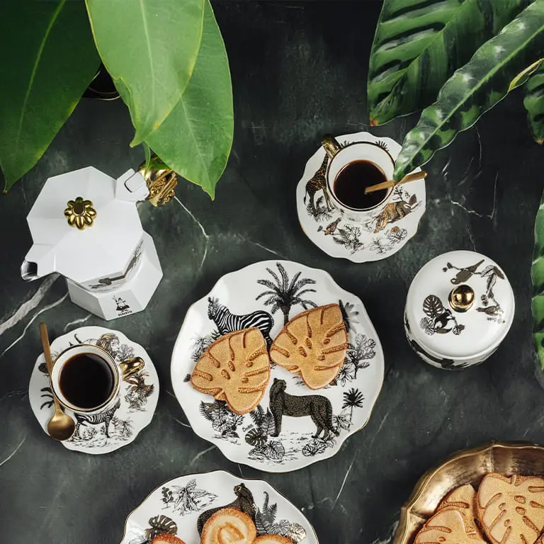 Whether it’s the classic Moka Express adorned with a majestic cheetah, or espresso cups illustrated with lions and zebras, each object becomes an invitation to slow down, savor, and connect with the moment.