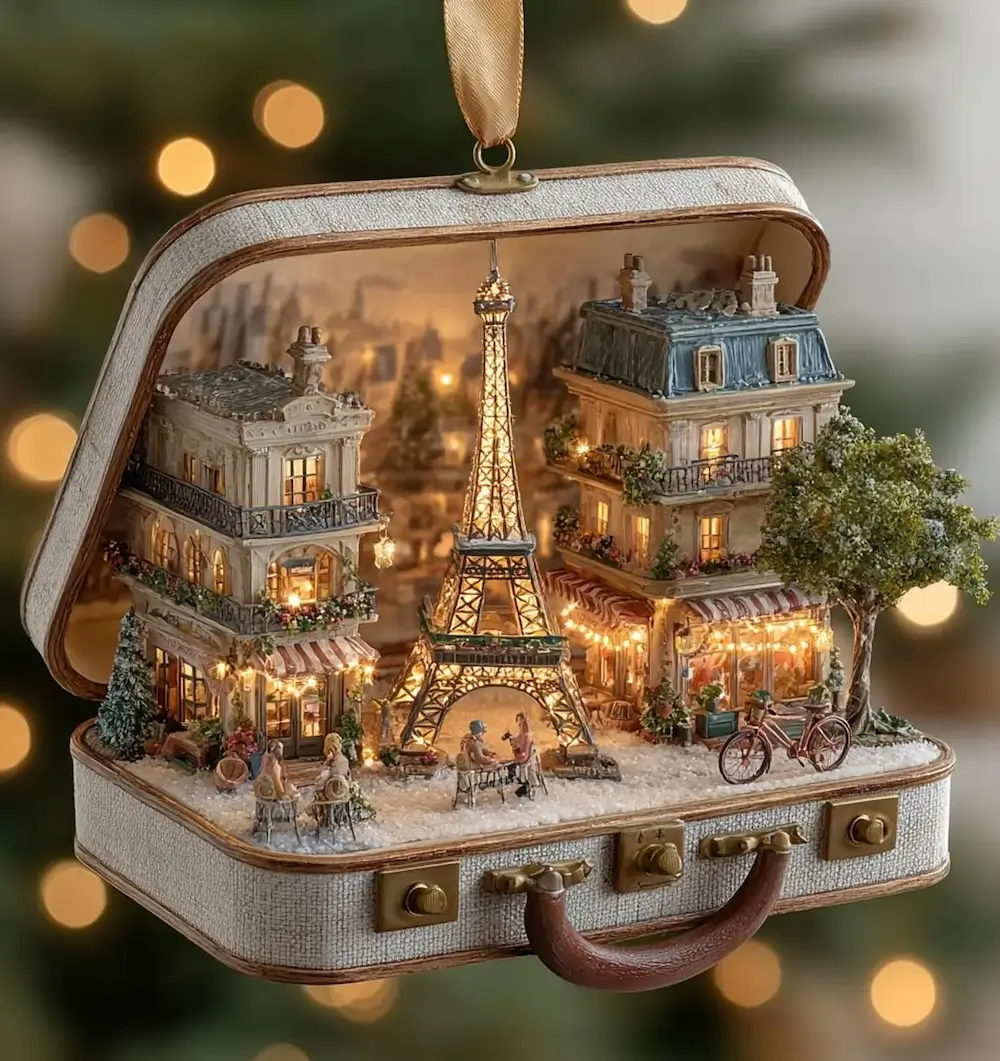 Image: Lighted Eiffel Tower Christmas Tree Ornament